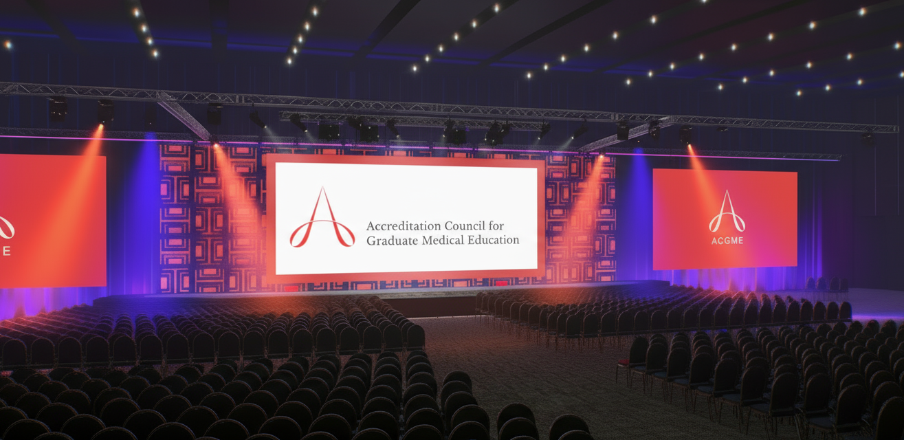 This design for ACGME brings your mission of advancing graduate medical education to life though a bold, unifying scenic motif.